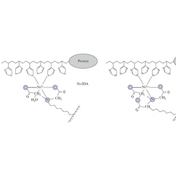 利用金属离子与蛋白的组氨酸标签或天然氨基酸的配位作用,通过金属离子修饰的磁珠捕获目标蛋白,再质谱鉴定目标蛋白或其结合蛋白。
